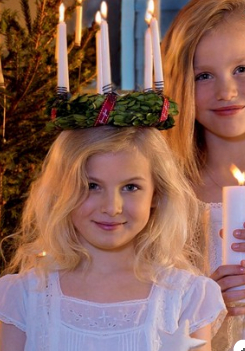 Am 13. Dezember tragen die Mädchen weisse Gewänder und brennende Kerzen.