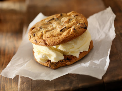 Ich hab einfach eine Packung Chocolate Chip Cookies aus dem Lebensmittelschrank gegriffen und eine Packung Vanille Eis geöffnet.