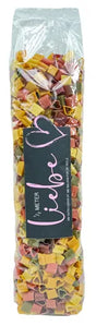 Die Herz-Pasta 1/2 Meter Liebe ❤️ von Pastificio Langhe ist das perfekte Geschenk für alle, die Genuss und Emotion verbinden möchten. Die wunderschön geformten, farbenfrohen Herz-Nudeln bringen Wärme, Freude und einen Hauch Romantik auf jeden Teller. Hergestellt aus hochwertigem Hartweizengriess und mit natürlichen Pflanzenfarben verfeinert, überzeugen sie sowohl optisch als auch geschmacklich. Ob für ein besonderes Dinner, eine liebevolle Überraschung, zum Verschenken oder einfach für einen farbenfrohen Familien-Lunch – diese Pasta zaubert jedem ein Lächeln ins Gesicht.
