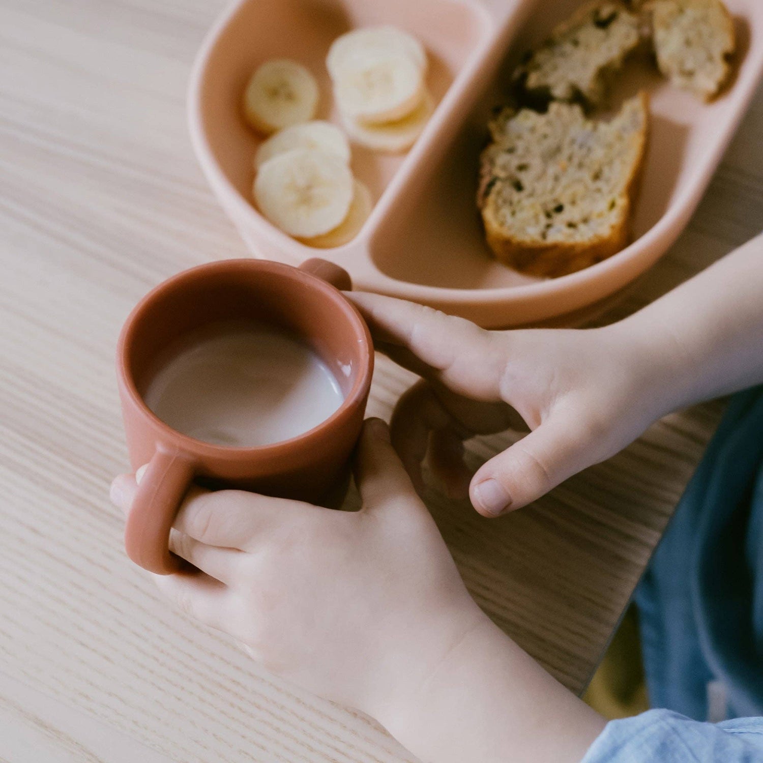 Das Trainingsbecher-Set in Rouge/Terrakotta ist perfekt für Babys ersten Schritt hin zum selbstständigen Trinken. Hergestellt aus hochwertigem, lebensmittelechtem Silikon, bietet es eine sichere, weiche und bruchsichere Alternative zu herkömmlichen Trinkbechern. Das Zwei-Griff-Design erleichtert kleinen Händen das Greifen und Halten, sodass Babys spielerisch das Kippen und Trinken üben können. Dank des sanften Materials wird das empfindliche Zahnfleisch geschützt und der Übergang von der Flasche angenehm unterstützt. Die Becher sind robust, pflegeleicht und ideal für den täglichen Einsatz am Familientisch.
