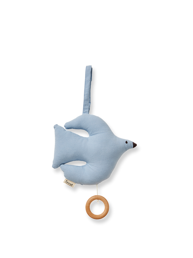 Die Swif Bird Music Mobile von Ferm Living begleitet dein Baby sanft in den Schlaf. Diese bezaubernde Spieluhr spielt Brahms' klassisches Wiegenlied und ist aus 100 % Bio-Baumwolle gefertigt, mit einer weichen Füllung aus recyceltem Polyester. Liebevolle Stickereien verleihen dem Vogel-Design eine besondere Note, während der Holzring als stilvoller Zuggriff dient. Dank praktischer Klettverschlüsse lässt sich die Spieluhr mühelos am Kinderwagen, Kinderbett oder Wickeltisch befestigen und sorgt für eine beruhigende Atmosphäre im Alltag.