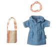Dieses liebevoll gestaltete Jeanskleid-Set für Maileg Mama Maus bringt neuen Schwung ins Mäusehaus. Das Outfit besteht aus einem charmanten Jeanskleid, einem passenden Haarband und einer kleinen Tasche – perfekt für modische Abenteuer und fantasievolle Rollenspiele. Das Kleidungsset ist aus weicher Baumwolle gefertigt, lässt sich leicht an- und ausziehen und ergänzt jede Maileg-Sammlung um einen frischen, modernen Look.