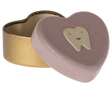 Diese kleine Zahndose von Maileg ist ein zauberhafter Ort, um Milchzähne sicher und stilvoll aufzubewahren. Das Metallherz mit feiner Zahnprägung und einer besonderen Crackled-Oberfläche auf dem Deckel bewahrt wertvolle Kindheitserinnerungen liebevoll auf. Ob in Heather, Minze oder Gold – diese Dose ist ein wunderschönes Andenken und ein liebevolles Geschenk für jedes Kind.