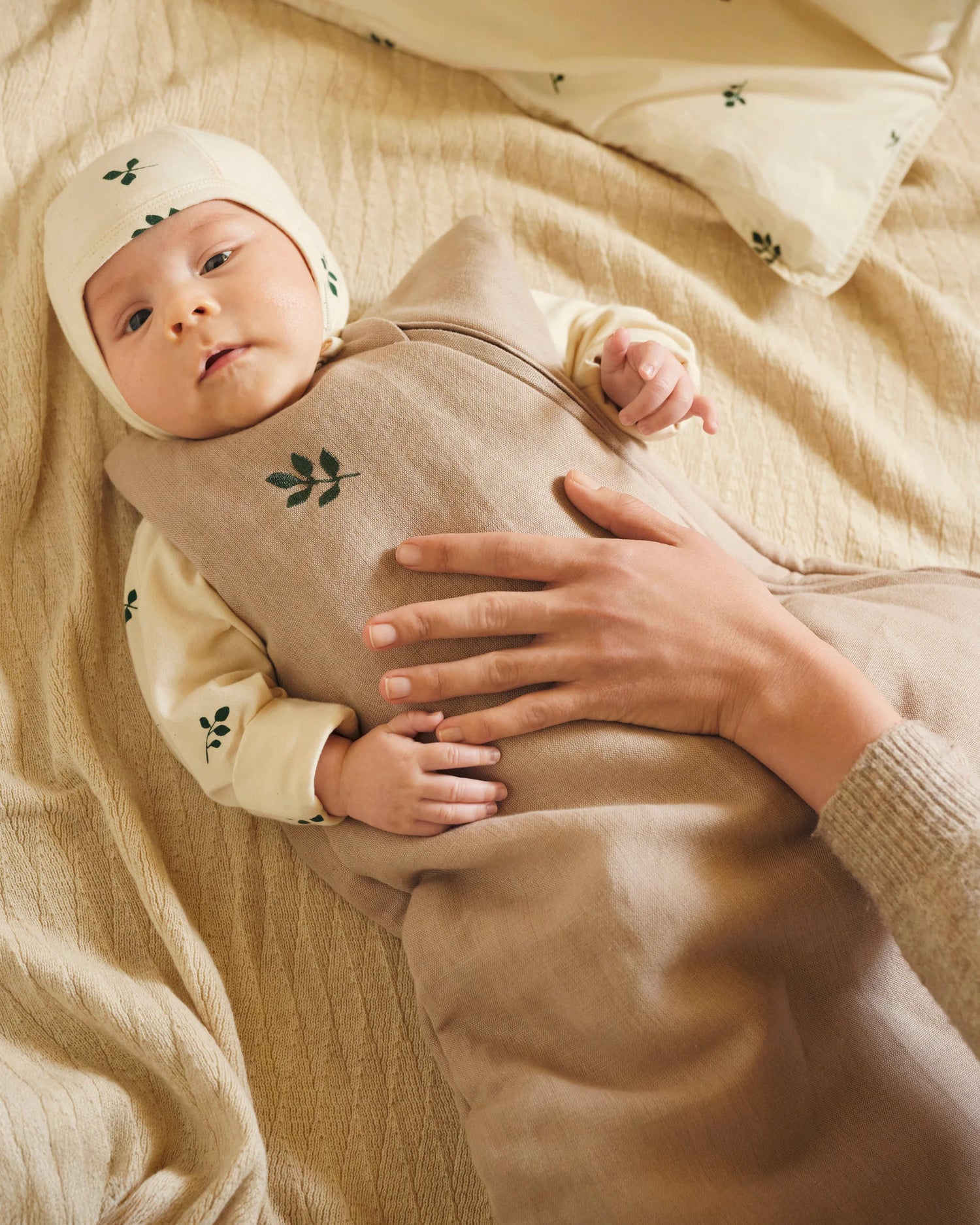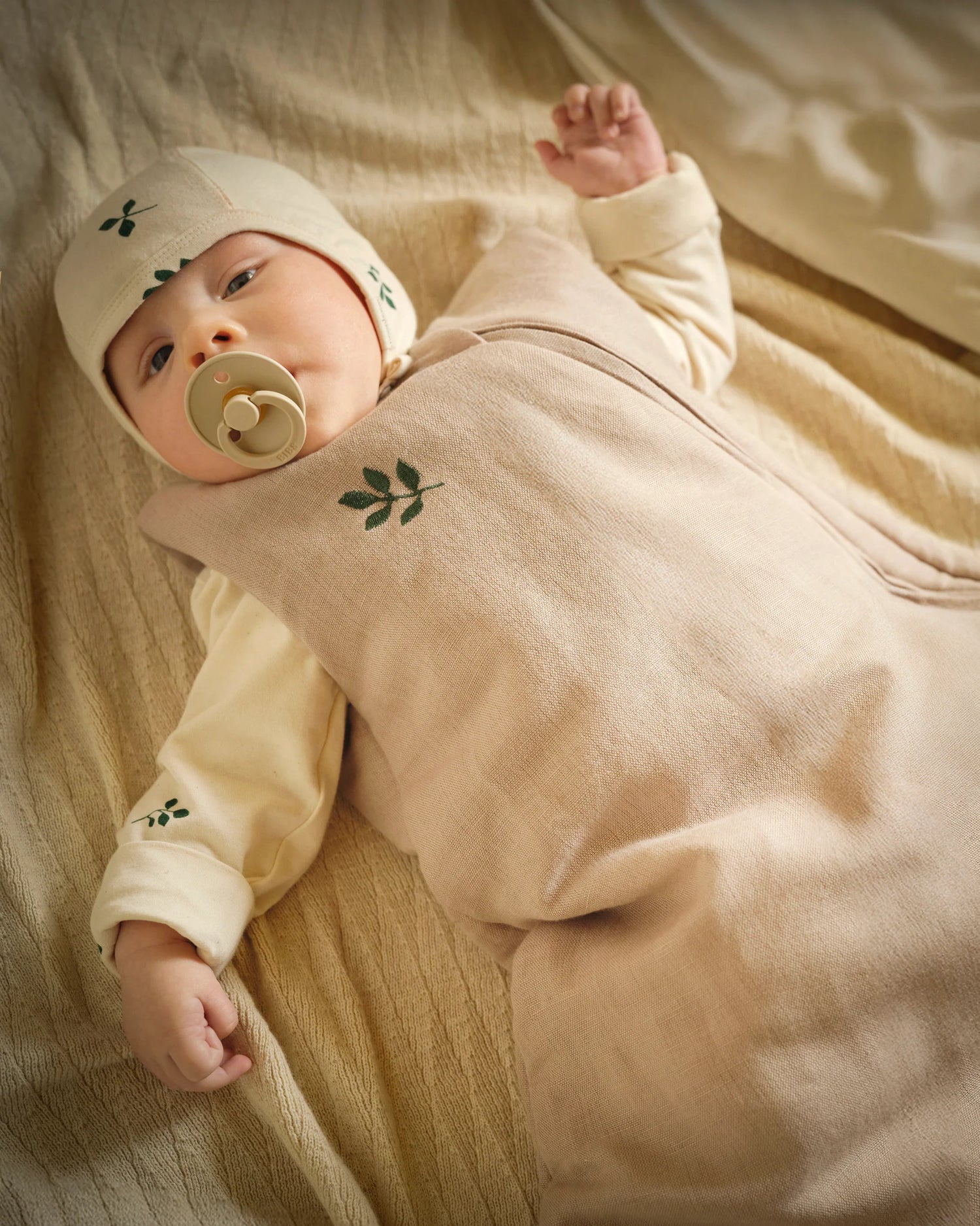 Mit dem kuschelig weichen Moonboon Schlafsack schenkst du deinem Baby eine ruhige, sichere und rundum behagliche Nacht – ganz ohne verrutschte Decken. Die Kombination aus strukturierter Leinenmischung aussen und sanftem Baumwollfutter innen sorgt für atmungsaktive Wärme und ein angenehm ausgeglichenes Schlafklima. Der grosszügige Schnitt im unteren Bereich bietet deinem Baby viel Bewegungsfreiheit zum Strampeln und Strecken, während es dennoch sicher eingehüllt bleibt. Der seitlich verlaufende, verdeckte Reissverschluss ermöglicht unkomplizierte Windelwechsel, ohne das Baby unnötig zu wecken, und das weiche Reissverschluss-Häuschen schützt die empfindliche Haut. Ein liebevoll gesticktes Detail auf der Brust rundet das Design ab – für stilvolle, entspannte Nächte von Anfang an.