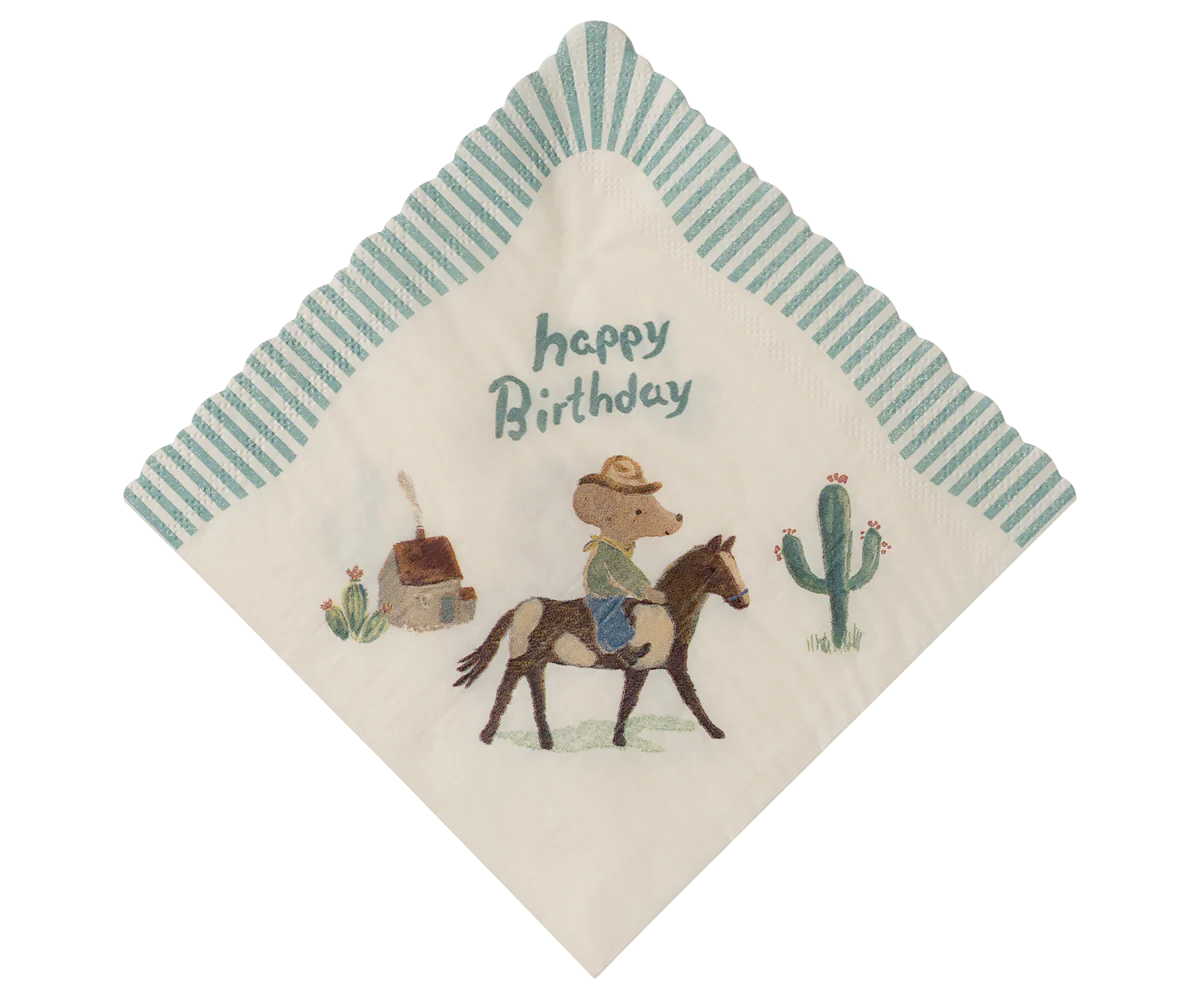 Mit den Pony Servietten von Maileg wird jeder Tisch liebevoll dekoriert. Die wunderschönen Papierservietten sind mit einer handgezeichneten Illustration von Dorthe Mailil gestaltet und bringen eine verspielte, skandinavische Atmosphäre auf den Tisch.