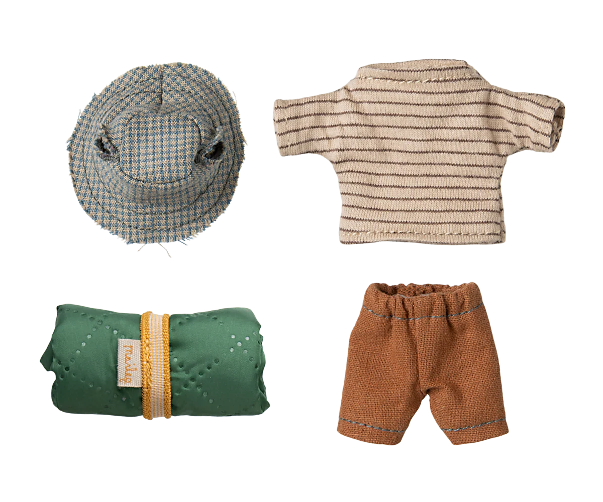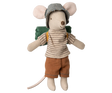 Die Wandermaus Großer Bruder von Maileg ist bereit für spannende Abenteuer in der Natur. Mit seinem gestreiften Outfit, dem kleinen Schlafsack und den Magneten in den Händen ist er perfekt ausgerüstet für Wanderungen, Campingausflüge und fantasievolle Entdeckungstouren.