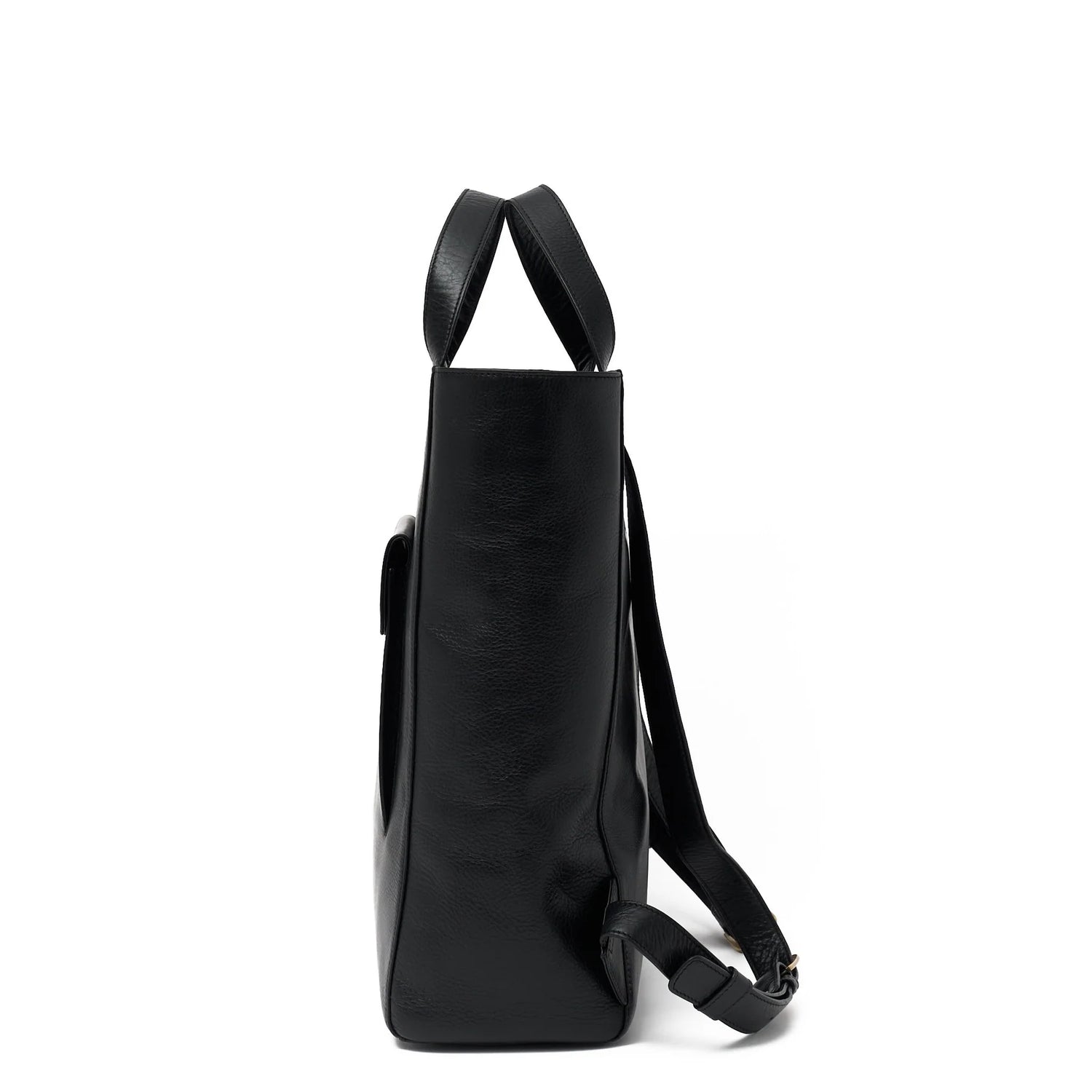 Der Rucksack Black überzeugt mit klarer Formensprache, hochwertigem Material und funktionalem Design. Der geräumige Innenbereich wird mit einem Reissverschluss sicher geschlossen und bietet genügend Platz für alles, was im Alltag nicht fehlen darf. Ergänzt wird das Design durch eine grosse Fronttasche mit Magnetknöpfen, die schnellen Zugriff auf wichtige Gegenstände ermöglicht. Das Innenleben ist vollständig mit einem hellen, gestreiften Stoff ausgekleidet und verfügt über ein grosszügiges Reissverschlussfach für kleinere Utensilien. Gefertigt aus echtem Rindsleder wirkt der Rucksack zeitlos elegant und lässt sich vielseitig kombinieren – ideal für Alltag, Arbeit oder unterwegs.
