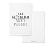 Die Karte „Sei glücklich nicht perfekt“ von TaTeeTaTa erinnert auf liebevolle Weise daran, was im Leben wirklich zählt. Sie ist die perfekte Ergänzung zu einem Geschenk oder ein kleiner Mutmacher für einen besonderen Menschen. Mit ihrer warmen Botschaft schenkt sie Inspiration, Freude und Gelassenheit. Gedruckt auf stabilem weißen Karton und hochwertig verarbeitet, wird sie zu einem stilvollen Gruß voller Herzlichkeit und positiver Energie.