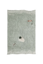 Der Teppich wird aus 97 % Baumwolle gefertigt und ist durch seine weiche Struktur angenehm zum Spielen. Die dreidimensionale Gestaltung mit wellenförmigen Erhöhungen sorgt für ein besonders interaktives Spielerlebnis. Zusätzlich beinhaltet der Teppich drei handgefertigte Textil-Accessoires – ein Spielzeugboot, einen Delfin und ein Insel-Spielset.