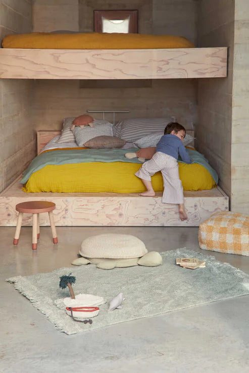 Der Spielteppich Waves von Lorena Canals lädt Kinder zu fantasievollen Abenteuern auf hoher See ein. Sein einzigartiges Design, inspiriert von den Wellen des Ozeans, schafft eine spielerische Umgebung, in der kleine Entdecker segeln, springen und erkunden können.