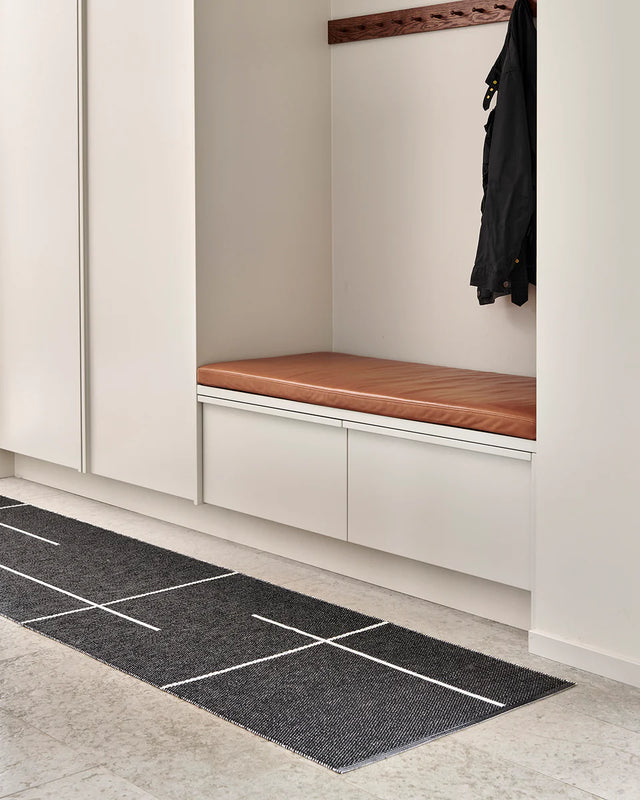 Skandinavisches Design für dein Zuhause: Der Fred Teppich von Pappelina überzeugt durch seine zeitlose Optik in Schwarz und Vanille und seine herausragende Qualität. In Schweden traditionell von Hand gewebt, vereint er klassische Handwerkskunst mit modernen, langlebigen Materialien. Gefertigt aus phthalatfreiem PVC und Polyester ist er besonders strapazierfähig, pflegeleicht und ein stilvoller Begleiter für viele Jahre.