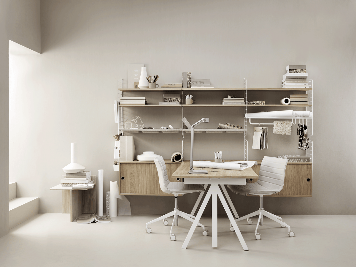 Egal, ob Sie im Büro, zu Hause oder hybrid arbeiten – Works und String® bieten die perfekte Lösung, um Ihren Raum effizient und stilvoll zu gestalten.