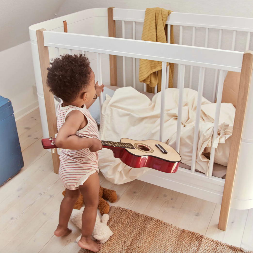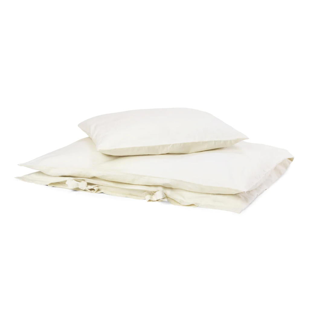Soft Pure Nature baby bedding made from 100% organic, undyed cotton percale. A natural choice, as undyed fibers use less energy and water to produce. The dense percale weave is not only durable and beautiful to look at, but also light and breathable. The bedding is pre-washed, which gives it a naturally crumpled look and makes it incredibly soft - the more you use it, the softer it becomes. The pillowcase has a zipper, while the duvet cover is closed with elegant ties.