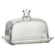 Diese elegante Butterbox aus Glas vereint stilvolles Design mit praktischer Funktionalität. Die feinen Rillen verleihen ihr eine edle Optik, während das mundgeblasene Glas jedes Stück zu einem Unikat macht. Mit Massen von 10,5 x 12 x 16,8 cm bietet sie ausreichend Platz für ein handelsübliches Stück Butter und hält es frisch. Perfekt für eine stilvolle Präsentation auf dem Frühstückstisch und passend zu jeder Kücheneinrichtung.