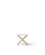 Das X-Gestell des Nachttischs besteht aus weiß geölter massiver Eiche und die Tischplatte aus MDF, einem Holzwerkstoff, der zu 60 % aus Birke, 20 % aus Kiefer und 20 % aus Espe besteht. MDF ist sehr robust und langlebig.