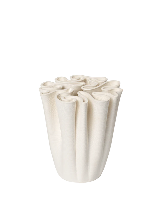 Ein skulpturales Statement für dein Zuhause: Die Dedali Vase Medium von Ferm Living vereint kunstvolle Formensprache mit funktionalem Design. Inspiriert vom französischen Wort „Dédale“ – dem Labyrinth – entsteht durch den komplex gearbeiteten oberen Rand ein faszinierendes Spiel aus Linien, Licht und Schatten. Gefertigt wird die Vase im 3D-Keramikdruck, was ihr eine außergewöhnliche Präzision und Tiefe verleiht.
