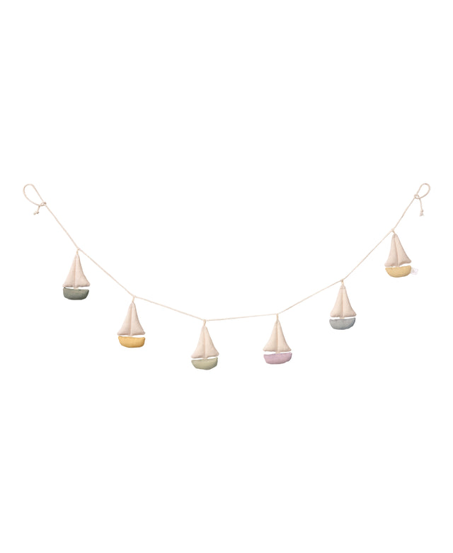 Die Girlande mit Segelbooten ist eine charmante Ergänzung für jedes Kinderzimmer. Ob an einem Himmelbett, Babybett, als Wanddekoration oder im Fenster – sie verleiht dem Raum einen verspielten und maritimen Touch.