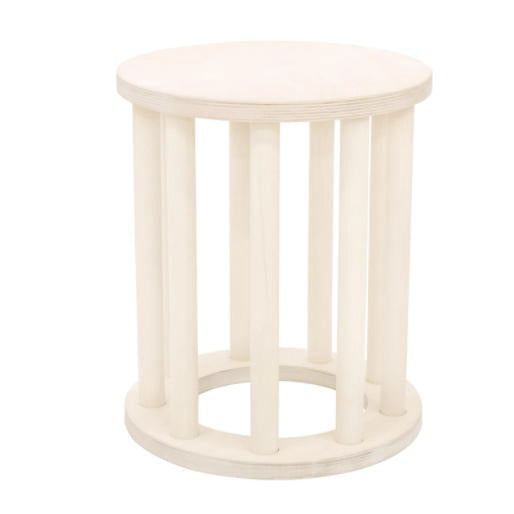 The LUOTO Stool is a versatile companion for our beloved LUOTO climbing arch. Together they make a beautiful desk, ideal for 6-11 year olds, but that's not all. If you turn it upside down, it turns into a goal to throw balls into, bringing an exciting element of active play to your child's everyday life. Like its namesake, the climbing arch, the LUOTO Stool is designed to be a timeless piece of furniture that complements any room in the house and is not just suitable for the children's room. In addition to its function as a stool and goal for children, LUOTO can also be used as a small side table, plant stand or bedside table thanks to its abstract composition.