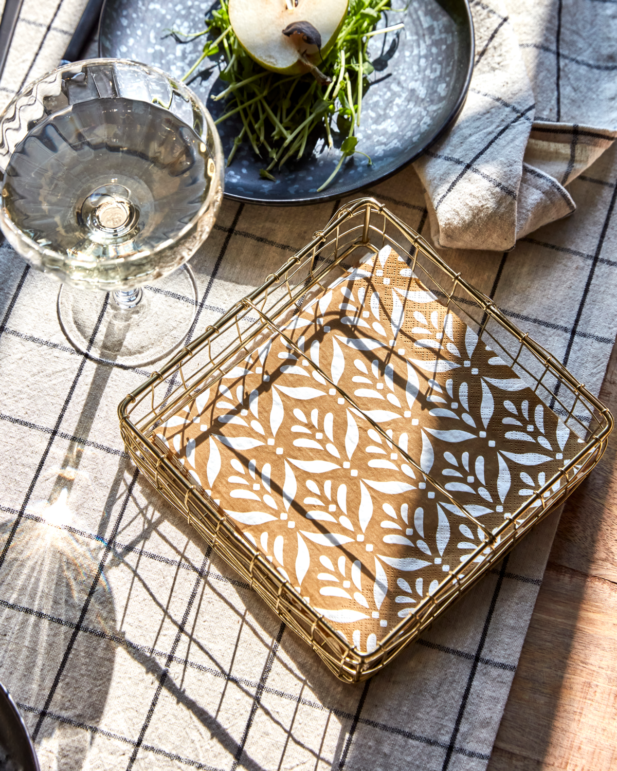 Der Serviettenhalter HDBring von House Doctor aus goldenem Eisen hält Servietten stilvoll an Ort und Stelle. Perfekt für den Alltag & festliche Anlässe.
