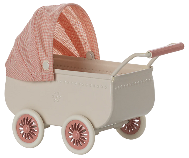 Mit dem liebevoll gestalteten Maileg Kinderwagen in zartem Koralleton wird jeder Spaziergang der Mäusefamilie zu einem besonderen Erlebnis. Der Kinderwagen im charmanten Vintage-Look lädt zu fürsorglichen Rollenspielen ein und lässt die kleinsten Babymäuse sicher und gemütlich mitfahren.