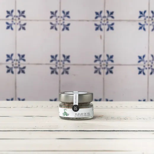 Das Fleur de Sel mit Wildkräutern vereint handgeschöpftes Meersalz von Kreta mit aromatischen Wildkräutern wie Oregano, Thymian und Bohnenkraut. Perfekt als kräftiges Rub für Fleisch oder als würziger Allrounder für zahlreiche Gerichte – dieses Salz bringt den authentischen Geschmack Kretas auf den Teller. Natürlich, intensiv und ohne künstliche Zusatzstoffe – für puren mediterranen Genuss!