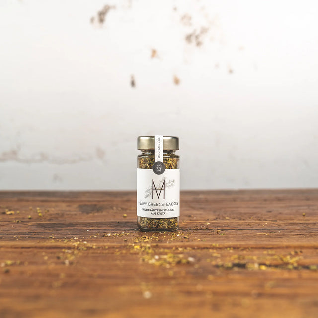 Erlebe echtes griechisches BBQ-Feeling mit diesem kräftigen Rub aus handgepflückten Wildkräutern von der Insel Kreta. Die perfekt abgestimmte Gewürzmischung aus Oregano, Thymian, Rosmarin und geräuchertem Meersalz verleiht deinem Fleisch – ob Rind, Lamm oder Schwein – einen authentischen, mediterranen Geschmack. Einfach das Fleisch mit dem Rub und etwas Olivenöl einreiben, 30–60 Minuten ruhen lassen und anschließend grillen. So schmeckt Griechenland – intensiv, würzig und voller Sonne!