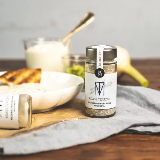 Mit Krass Tzatziki wird jedes Gyros, Souvlaki oder gegrillte Fleischgericht zum echten Griechenland-Erlebnis! Die Mischung aus handgepflückten Wildkräutern Kretas, Knoblauch, Dill und Petersilie sorgt für authentischen Geschmack. Einfach mit griechischem Joghurt anrühren, mit Olivenöl und Salz verfeinern – und das perfekte Tzatziki geniessen. Tipp: Für extra Frische mit gehobelter Gurke und etwas Essig abrunden!