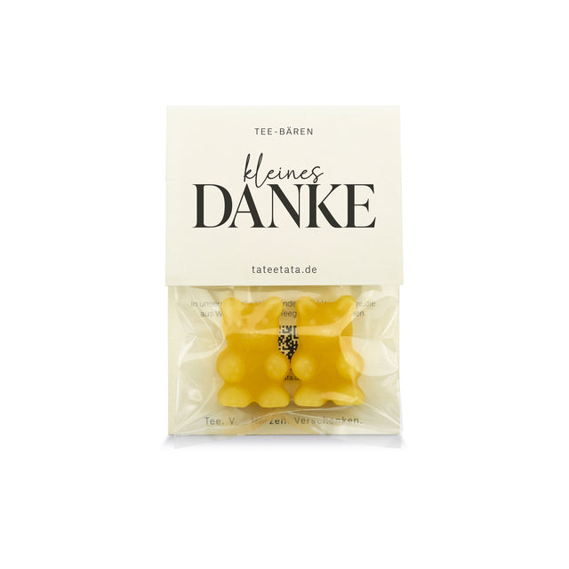 Nicht groß. Nicht laut. Einfach nur herzlich – „kleines Danke“ ist die süße Aufmerksamkeit im Mini-Format. Die Tee-Bären MINI im fruchtig-frischen Pfirsich-Zitrone-Geschmack sind perfekt, um einem lieben Menschen zwischendurch Danke zu sagen. Ob als kleine Geste im Alltag, als Extra zum Geschenk oder als kleine Portion Freude für zwischendurch – diese Bärchen zaubern ein Lächeln ins Gesicht. Zum Naschen oder als fruchtiger Tee aufgegossen ein Genussmoment voller Wertschätzung.
