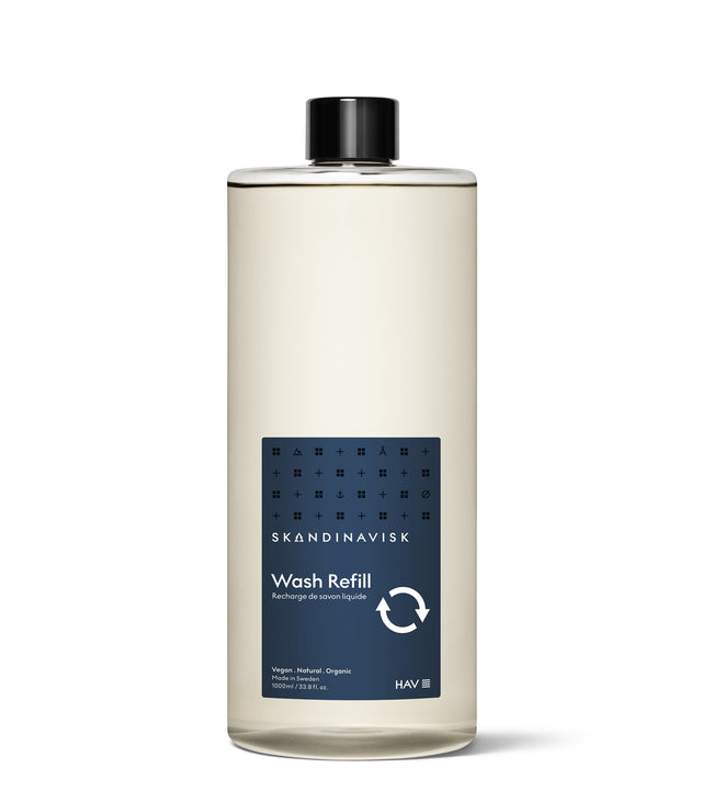 Das HAV Wash Refill 1000ml bringt die Weite skandinavischer Küsten in dein Badezimmer – nachhaltig und im grosszügigen Literformat. Der frische Duft von Meeresgischt, Seegras, Weissdorn und Dünenrosen erinnert an lange Spaziergänge entlang ferner Küstenlinien. Die vegane, natürliche und organische Formel reinigt Hände und Körper besonders sanft. Bio-Aloe Vera spendet intensive Feuchtigkeit, während schwedische Haferfasern beruhigend wirken und die Haut geschmeidig halten. Die Refill-Flasche aus recyceltem rPET ermöglicht eine ressourcenschonende Wiederverwendung deiner Originalflasche. Hergestellt in Schweden.