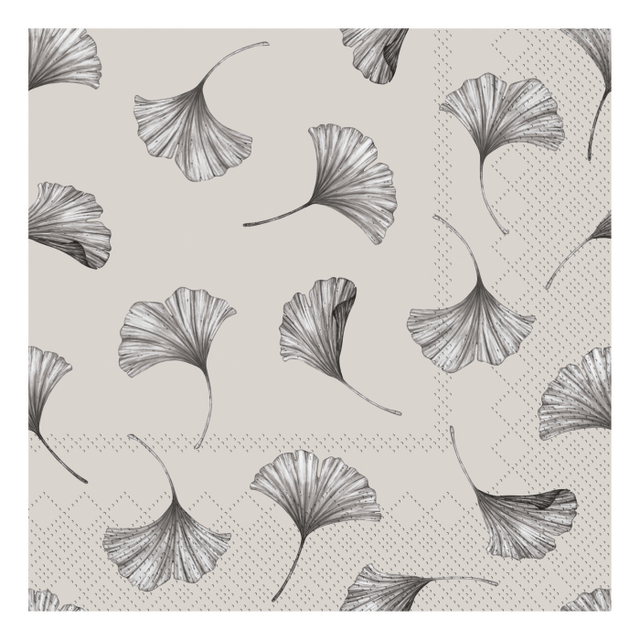 Die PapierServietten "Ginko Blätter" bringen mit ihrem eleganten Design einen Hauch von Natur auf Ihren Tisch. Mit einer Größe von 33 x 33 cm (aufgefaltet) passen sie perfekt zu jeder Tischdekoration. Die 3-lagigen Servietten aus hochwertigem Papier bieten optimale Saugfähigkeit und Stabilität – ideal für besondere Anlässe oder den Alltag. Das stilvolle Ginko-Muster verleiht Ihrer Tafel eine natürliche und zugleich moderne Note.