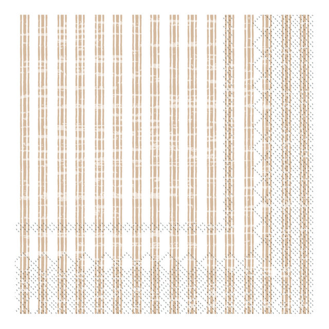 Die Servietten mit Streifen in der Farbe Leinen sind die perfekte Wahl für eine schlichte und zugleich elegante Tischdekoration. Mit einer Größe von 33 x 33 cm (aufgefaltet) und einer 3-lagigen Papierqualität bieten sie eine ideale Mischung aus Stil und Funktionalität. Das dezente Streifenmuster in der natürlichen Leinenfarbe verleiht Ihrer Tafel eine zeitlose und edle Note – ideal für jeden Anlass, ob festlich oder alltäglich.