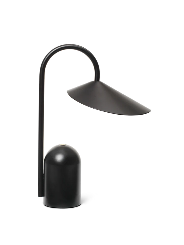 Our Arum table lamp with a solid marble base and slim stand is a study in contrast and balance with its asymmetrical lampshade. The lamp is made from a beige powder-coated metal and travertine and the petal-shaped lampshade appears to float on the stem-like stand. The lamp provides soft ambient lighting and is ideal for a home office desk or sideboard.