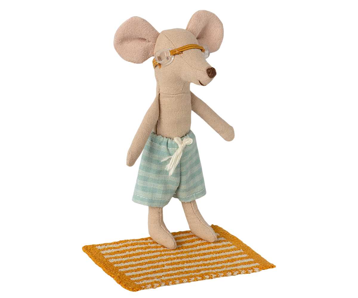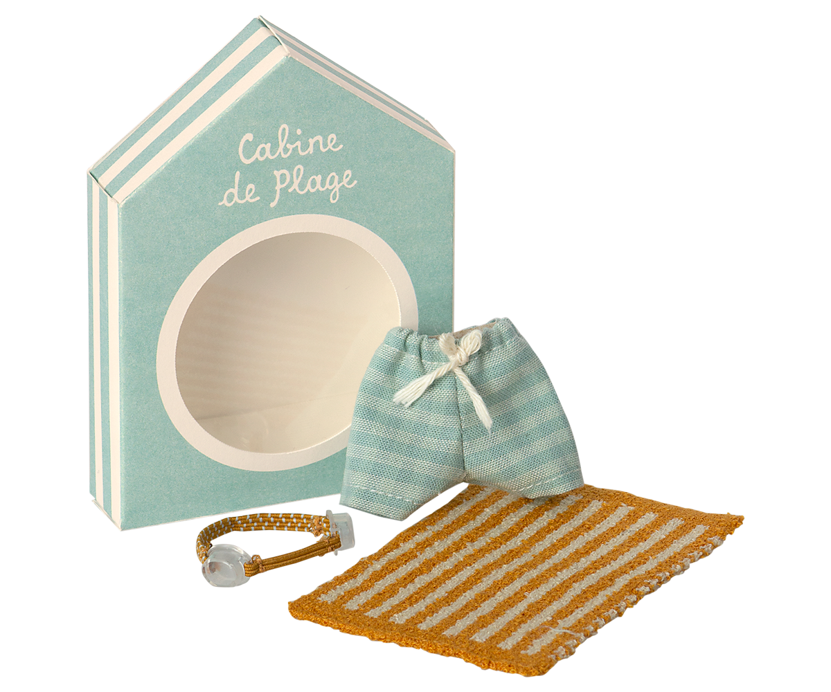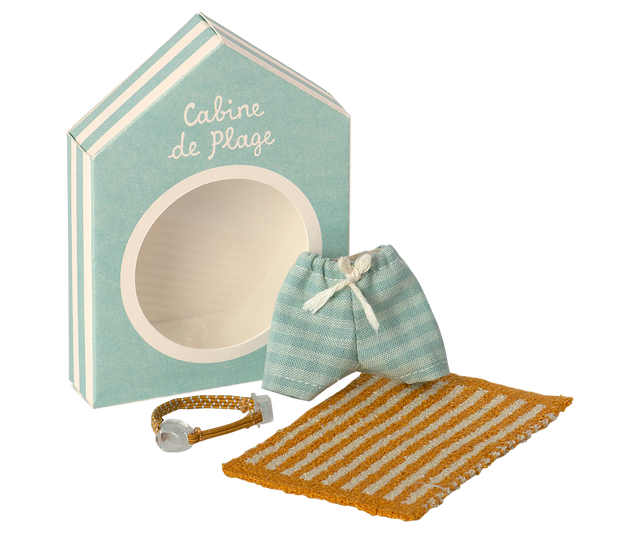 Ferienzeit für deine Maileg-Mäuse! Dieses liebevoll gestaltete Set enthält alles, was die große Schwester oder der große Bruder für einen perfekten Tag am Strand braucht: eine stilvolle Badehose, eine coole Schutzbrille und ein weiches Handtuch. Die Accessoires sind bis ins kleinste Detail ausgearbeitet und machen das Spielen noch lebendiger. Eine wunderbare Ergänzung für die Mäusewelt, die garantiert Urlaubsstimmung verbreitet!