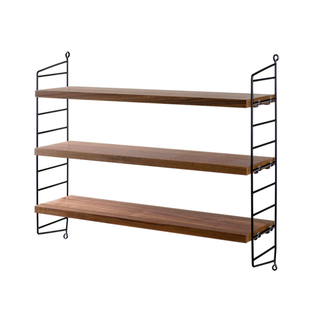 Du suchst ein Regal, das Stil und Funktion verbindet? Das String® Pocket in Walnuss/Schwarz bringt warme Eleganz und klare Linien in dein Zuhause. Ideal für kleine Räume mit grossen Ansprüchen – jetzt entdecken und erweitern!