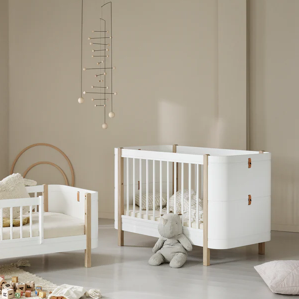 Wood Mini+ Babybett inkl. Umbauset Juniorbett, weiss/Eiche