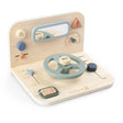 Die Sebra Aktivitätstafel Auto aus hochwertigem Holz begeistert kleine Autofans ab 1 Jahr und lädt zu fantasievollem Spiel ein. Inspiriert von einem modernen Elektroauto können Kinder am Lenkrad drehen, die Hupe betätigen, die Gänge schalten, den Rückspiegel nutzen und sogar den Warnblinker drücken. Durch die liebevoll gestalteten Details wird nicht nur die Neugier geweckt, sondern auch die Feinmotorik und Kreativität gefördert. Die stabile Verarbeitung sorgt für Sicherheit und langanhaltende Freude. Mit zwei mitgelieferten Schrauben lässt sich die Tafel einfach montieren und ist damit sowohl praktisch als auch langlebig – ein echtes Highlight im Kinderzimmer oder unterwegs.